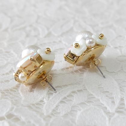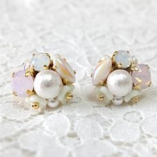 【素材】金具部分:合金、スワロフスキー、ヴィンテージストーン、コットンパール、スワロフスキーパール、花:チェコビーズ