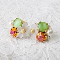 夏らしいフラワーピアスの再入荷です。