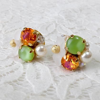 鮮やかなカラーが顔周りを華やかに演出してくれるサマーアクセサリーです。