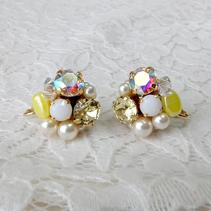 【素材】金具部分:合金、スワロフスキー、スワロフスキーパール、ヴィンテージグラスビーズ