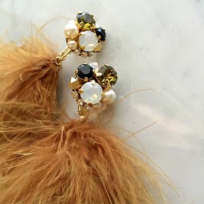 【素材】金具部分:合金、真鍮、スワロフスキー、スワロフスキーパール、フェザーファー