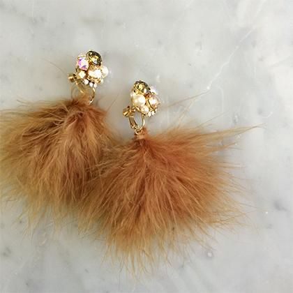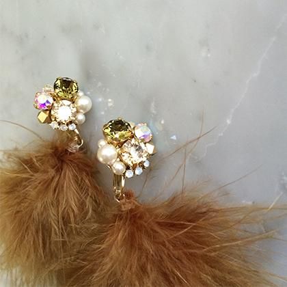 【素材】金具部分:合金、スワロフスキー、スワロフスキーパール、フェザーファー