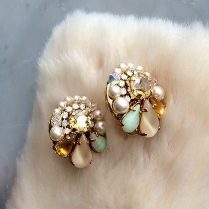 【素材】金具部分:合金、真鍮、スワロフスキー、スワロフスキーパール、ヴィンテージストーン