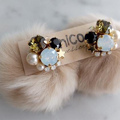 ※ピアスはキャッチにファーがついたデザインです。