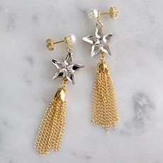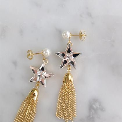 揺れる度に耳元で輝くお星様とトレンドのロングチェーンで