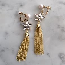 揺れる度に耳元で輝くお星様とトレンドのロングチェーンで
