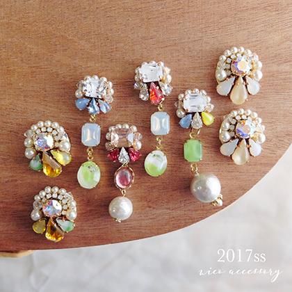 【素材】金具部分:合金、スワロフスキー、スワロフスキーパール、ヴィンテージストーン、ヴィンテージコットンパール