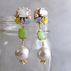 【素材】金具部分:合金、スワロフスキー、スワロフスキーパール、ヴィンテージストーン、ヴィンテージコットンパール