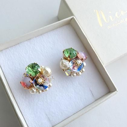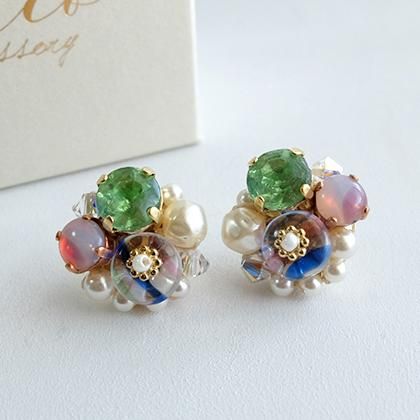 【素材】金具部分:合金、スワロフスキー、ヴィンテージストーン、ヴィンテージビーズ、スワロフスキーパール