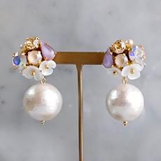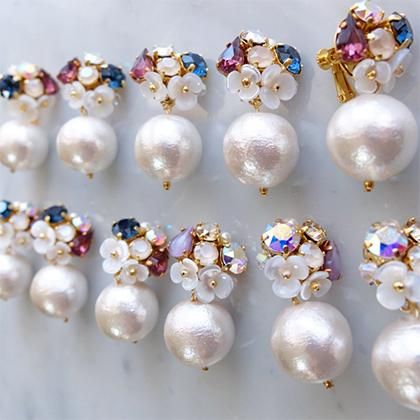 【素材】金具部分:合金、スワロフスキー、スワロフスキーパール、ヴィンテージストーン、コットンパール、シェル