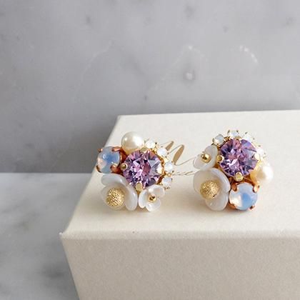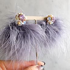 【素材】金具部分:合金、スワロフスキー、スワロフスキーパール、マラボーファー、ヴィンテージストーン