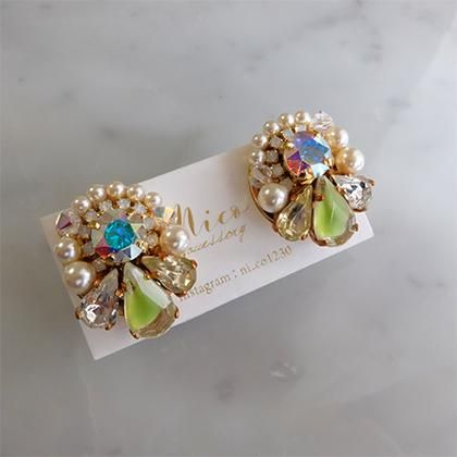 【素材】金具部分:合金、スワロフスキー、スワロフスキーパール、ヴィンテージストーン