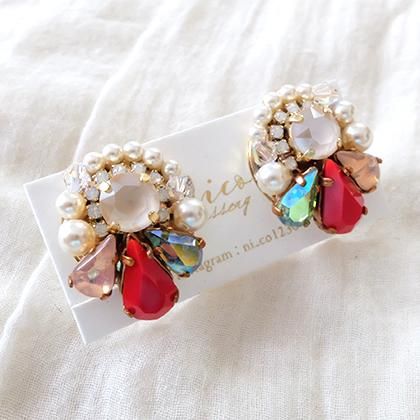 【素材】金具部分:合金、スワロフスキー、スワロフスキーパール、ヴィンテージグラスストーン
