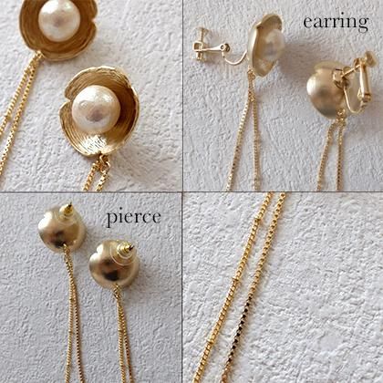 【素材】ピアス:真鍮/16k Gold Plated (16K ゴールドプレート)イヤリング:合金、コットンパール