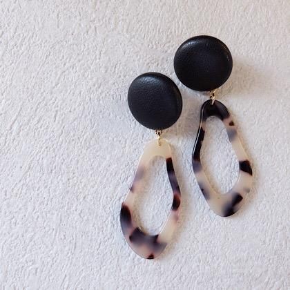 【size】べっ甲フープ 23mm x 43mm、レザー 20mm