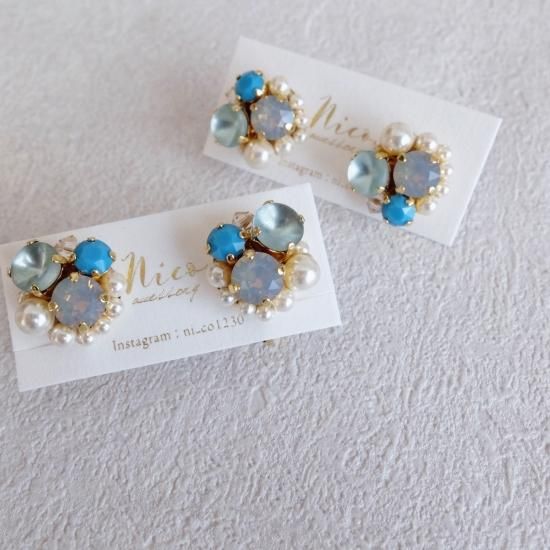 【素材】金具部分:合金/スワロフスキー、スワロフスキーパール、ヴィンテージグラスストーン