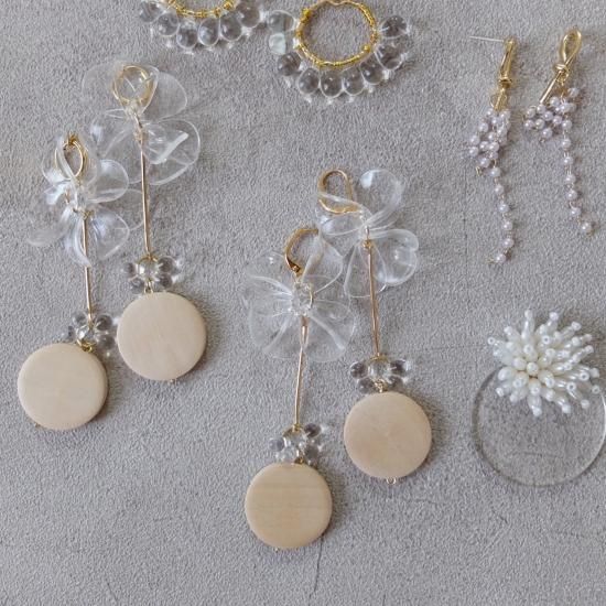 〇マーブルフラワー×リネンチャーム ピアス ¥3,300