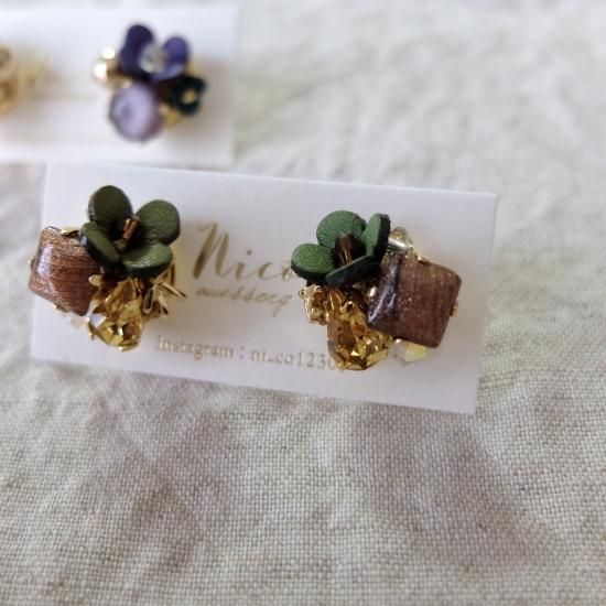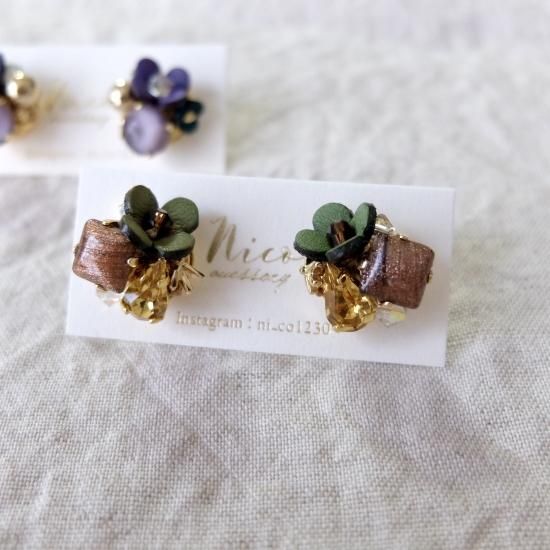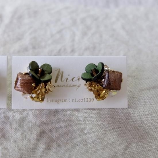 ビジュー下の金具は真鍮にニッケルフリーメッキを処理しております。汗をかく季節、かゆみ等気になる方にも