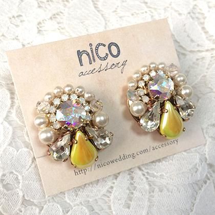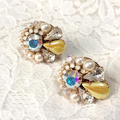 オーロラ加工されたYellowストーンが印象的なイヤリング。